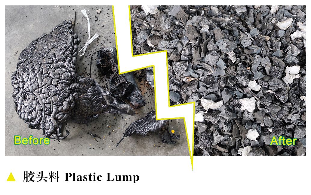 单轴撕碎机的电机通过三角带带动中速比减速机,进而带动刀轴旋转,刀轴上的刀粒在旋转过程中撕扯物料,再与定刀形成剪切,这部分物料被动刀带入腹部,当尺寸小于腹部筛网时即从筛网掉出,否则会被带入破碎室中继续撕扯剪切。单轴破碎机独特的破碎方式使其能够适应较大块的物料甚至是物料压包。由于其转速属于中低速,因此它的扭矩较大、效率较高。配备的筛网可以很好地控制出料尺寸。这些优点使得它的应用范围较广,经常出现在各种固废资源化处理项目中。